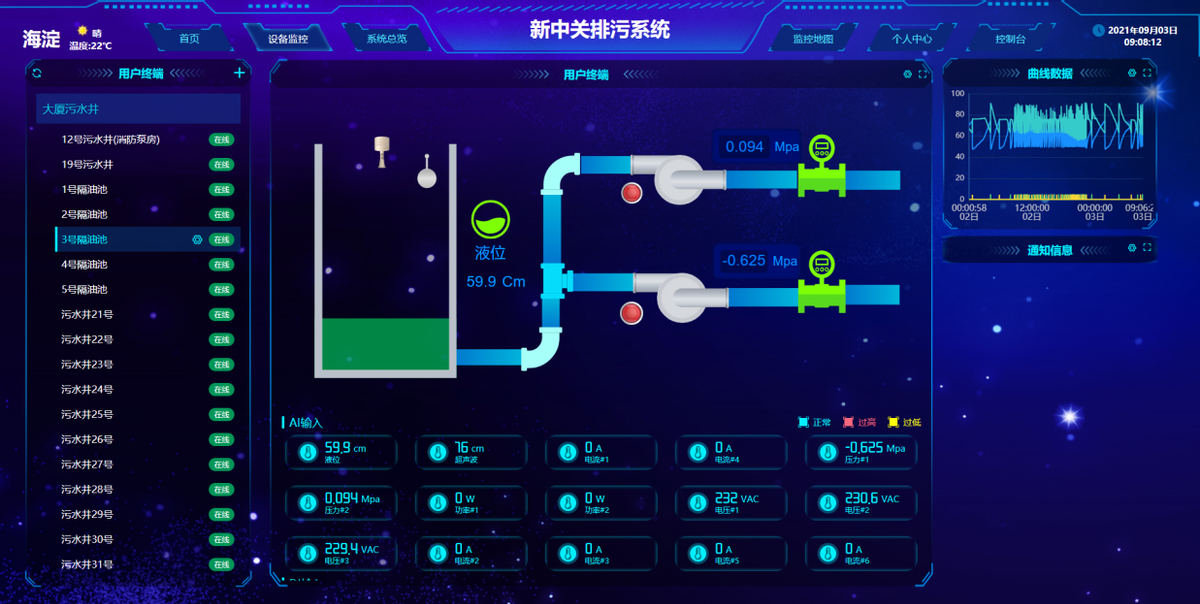7、集中監(jiān)控:云平臺支持接入多套監(jiān)控系統(tǒng)的數(shù)據(jù),集中監(jiān)控所有設備的運行實況,統(tǒng)一匯總,遠程管理各地泵站的開關運行;