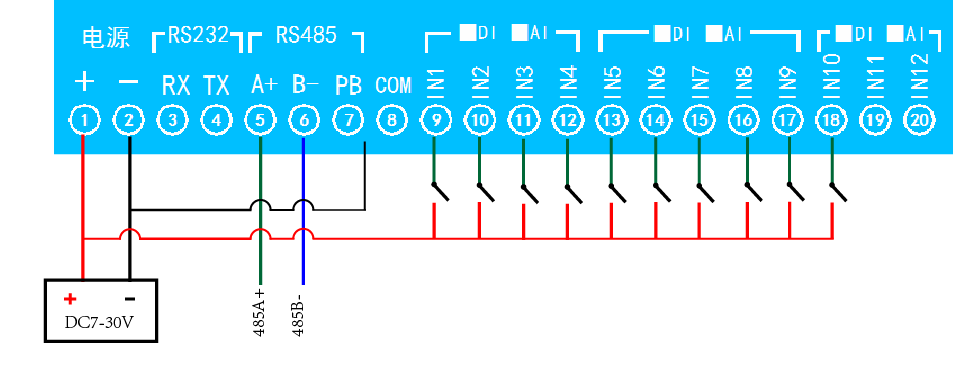 功能說(shuō)明:16DO+12DI+12AI