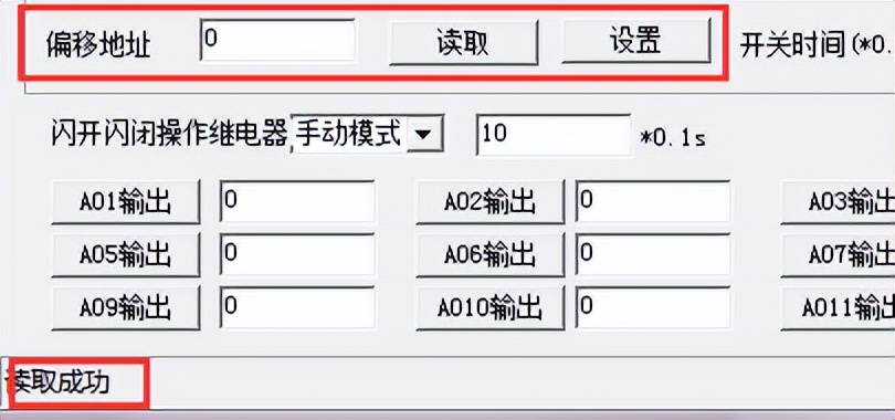點擊DAM調(diào)試軟件下方偏移地址后邊的“讀取”或“設置”來對設備的偏移地址進行讀取或設置。