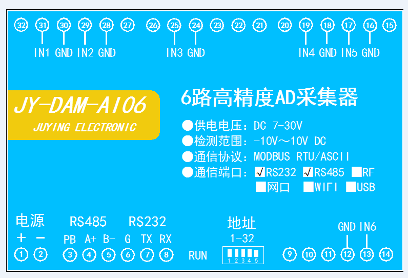 工業(yè)級模擬量采集模塊,寬壓DC 7-30V供電;6路模擬量(4-20MA、0-5V、0-10V)輸入;支持RS232或隔離RS485通訊接口;標(biāo)準(zhǔn)Modbus RTU協(xié)議;支持發(fā)送Modbus RTU/ASCII控制指令;提供配套軟件;支持二次開發(fā)。應(yīng)用于溫室...