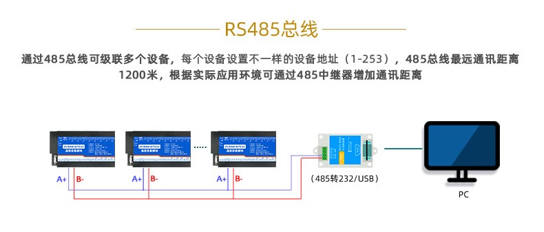 電腦自帶的串口一般是RS232,需要配232-485轉換器(工業(yè)環(huán)境建議使用有源帶隔離的轉換器),轉換后RS485為A、B兩線,A接板上A端子,B接板上B端子,485屏蔽可以接PB。若設備比較多建議采用雙絞屏蔽線,采用鏈型網(wǎng)絡結構。