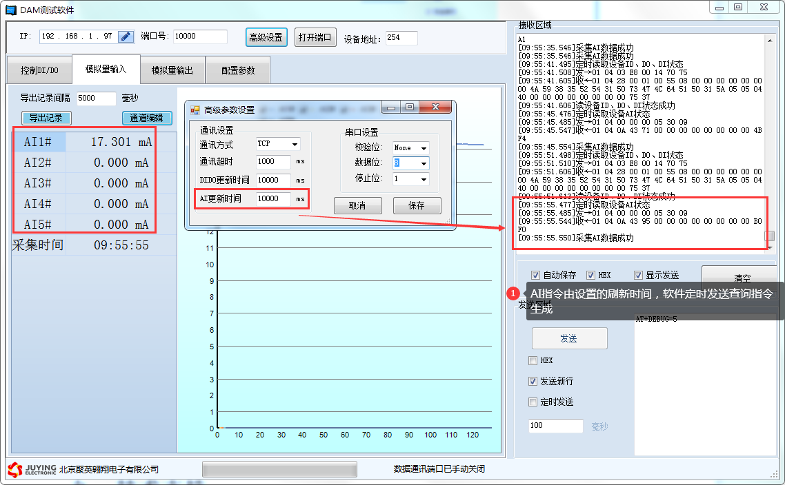 詳細使用說明參考:JYDAM調試軟件使用說明文檔
