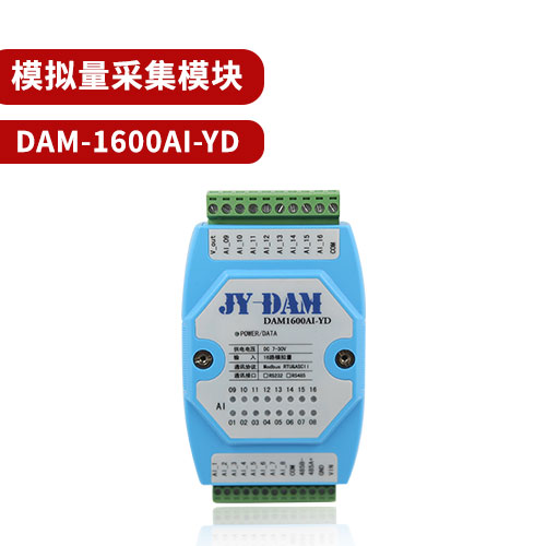 工業(yè)級模擬量采集模塊 16路模擬量采集(AI) DAM-1600AI-YD,16路模擬量(4-20MA、0-5V、0-10V)輸入;支持RS232或隔離RS485通訊接口;標(biāo)準Modbus RTU協(xié)議;支持發(fā)送Modbus RTU/ASCII控制指令;提供配套...