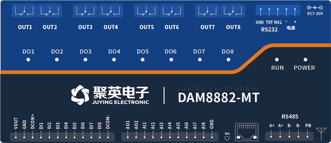 工業(yè)級繼電器控制板 8路繼電器控制(DO)8路開關(guān)量采集(DI)DAM8882-MT,8路繼電器控制輸出,觸點(diǎn)隔離;8路開關(guān)量輸入;支持RS232或隔離RS485通訊接口;標(biāo)準(zhǔn)Modbus協(xié)議,支持Modbus RTU/ASCII;支持點(diǎn)動(dòng)輸出,聯(lián)動(dòng)功能(輸入...