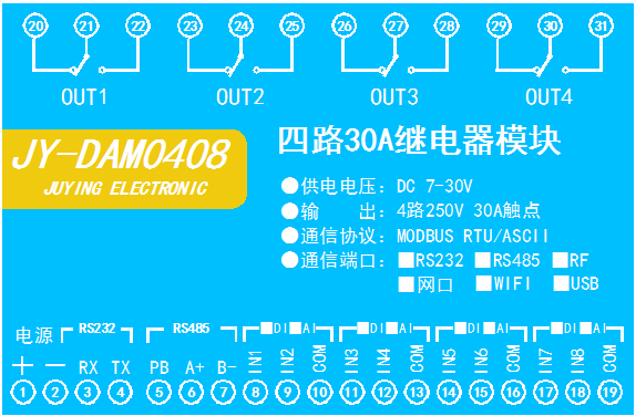 功能說(shuō)明:8DO+8DI+8AI+8AO