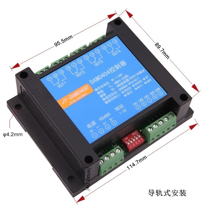 工業(yè)級繼電器控制板 4路繼電器輸出(DO)DAM0400,4路繼電器控制輸出,觸電隔離;支持RS232,隔離RS485通訊接口;標準Modbus協(xié)議,支持Modbus RTU/ASCII;支持點動輸出;提供配套控制軟件;支持二次開發(fā)。應用于智能家居、用水管理、...