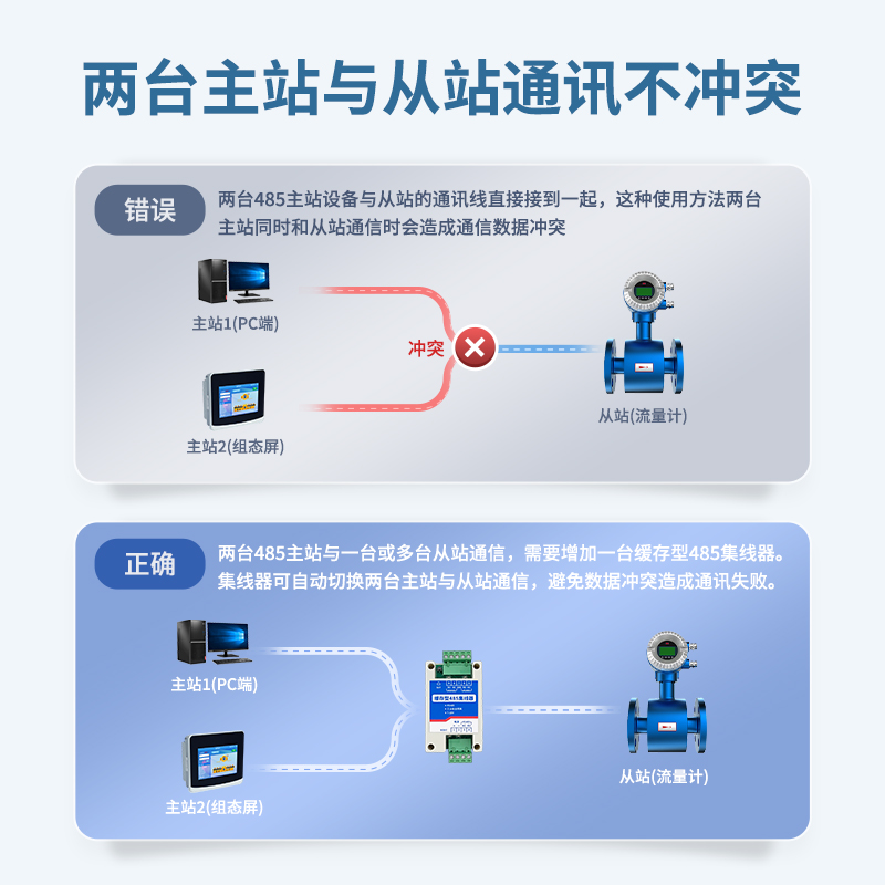緩存型485 集線器可以協(xié)調(diào)多個485 主機訪問單個子機,通訊網(wǎng)絡(luò)不沖突;另一方面:可以可充當(dāng)集線器功能,用于擴展485 分支和總線中子機數(shù)量。