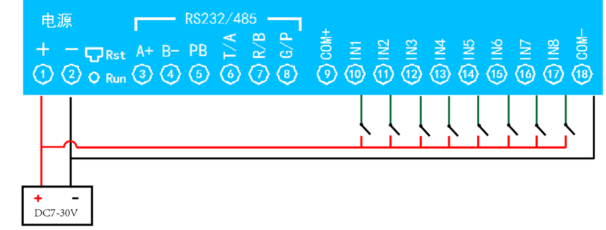DAM0809MOS工業(yè)級繼電器控制板,8路三極管輸出(0C)9路開關(guān)量采集(DI) ,8路三極管輸出;9路開關(guān)量輸入;支持RS232或隔離RS485通訊接口;標(biāo)準(zhǔn)Modbus協(xié)議,支持Modbus RTU/ASCll;支持點動輸出,聯(lián)動功能(輸入控制輸出);...