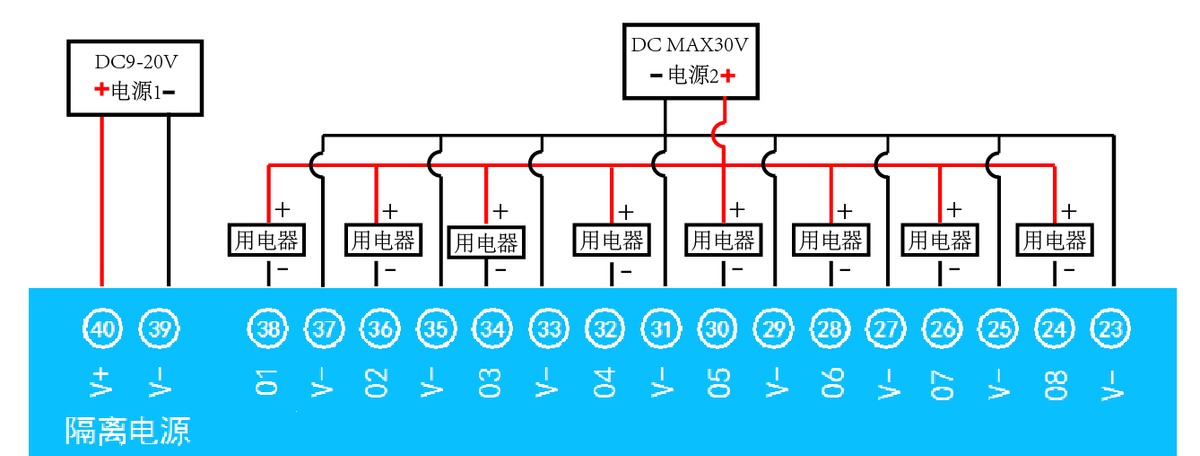 控制1路繼電器(以第一路開為例,其他通道參照本例)