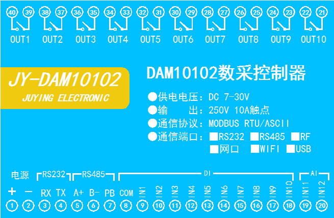 工業(yè)級繼電器控制板 10路繼電器控制(DO)2路模擬量采集(Al)10路開關量采集(DI)DAM10102,10路繼電器控制輸出,觸點隔離;10路開關量輸入;2路模擬量(4-20MA、O-5V、0-10V)輸入;支持RS232或隔離RS485通訊接口;標準Mo...