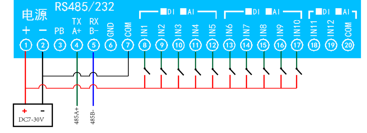 功能說明:4DO+5AI+5DI