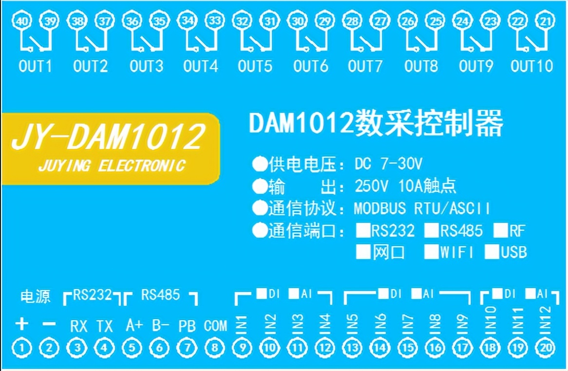 工業(yè)級(jí)繼電器控制板 10路繼電器控制(DO)12路模擬量采集(AI),10路繼電器控制輸出,觸點(diǎn)隔離;12路模擬量(4-20ma、0-5V、0-10V)輸入;支持RS232或隔離RS485通訊接口;標(biāo)準(zhǔn)Modbus協(xié)議,支持Modbus RTU/ASCll;支...