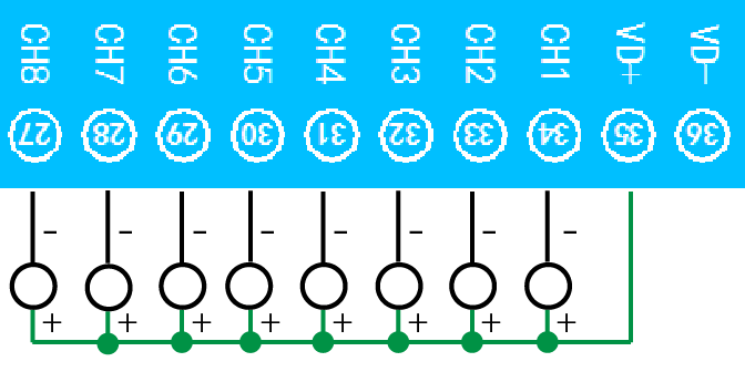 下圖中的電源部分為傳感器供電,AD1-AD14接傳感器信號(hào)正,6腳GND為傳感器信號(hào)負(fù)。
