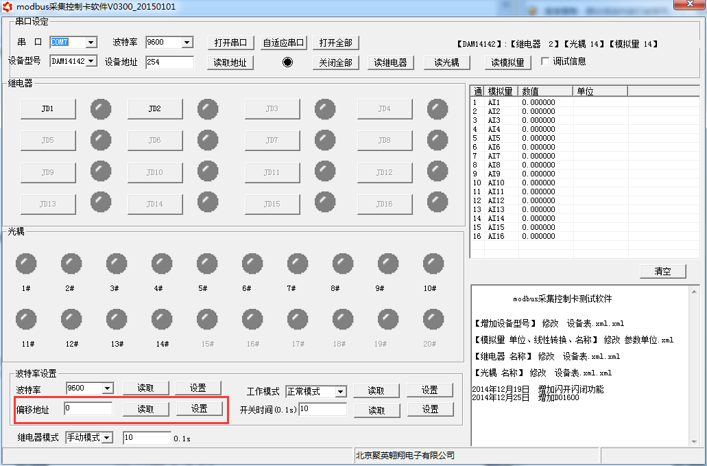 點(diǎn)擊軟件下方偏移地址后邊的“讀取”或“設(shè)置”來對(duì)設(shè)備的偏移地址進(jìn)行讀取或設(shè)置。