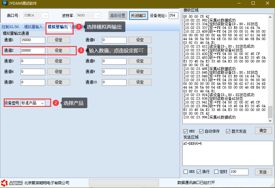 點擊JYDAM調(diào)試軟件下方偏移地址后邊的“讀取”或“設(shè)置”來對設(shè)備的偏移地址進行讀取或設(shè)置。
