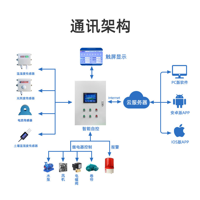 支持遠(yuǎn)程監(jiān)控、手機(jī)報(bào)警、智能自控脫機(jī)運(yùn)行、免費(fèi)云平臺使用,大棚卷簾控制、大棚補(bǔ)光、風(fēng)機(jī)控制、水肥一體、智能灌溉等方面,應(yīng)用場景:簡易溫濕度大棚、日光溫室大棚、連棟溫室大棚,農(nóng)作物養(yǎng)殖、室內(nèi)(豬、雞、鴨、蝎子)養(yǎng)殖等